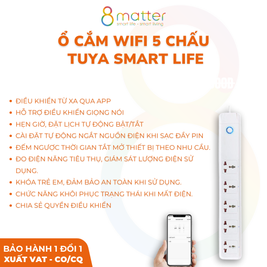 Ổ Cắm Wifi 5 CHẤU TUYA SMART LIFE